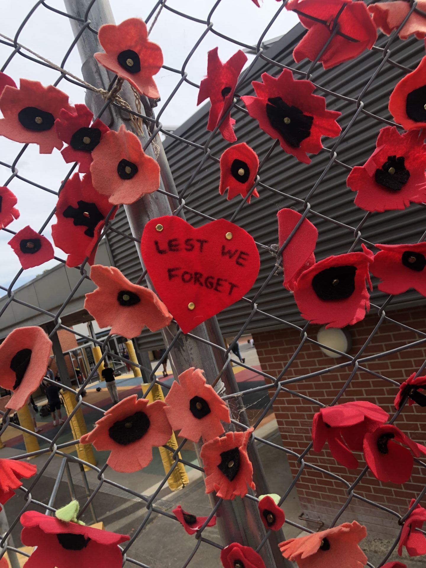 Students have worked with so much care, respect and kindness on commemorating ANZAC Day. Junior students have made new poppies for our Heart of Poppies on the oval fence, a permanent installation created by all students at the school. Senior students painted a poster of the dawn service, incorporating silhouettes and ANZAC motifs. Lest we forget.