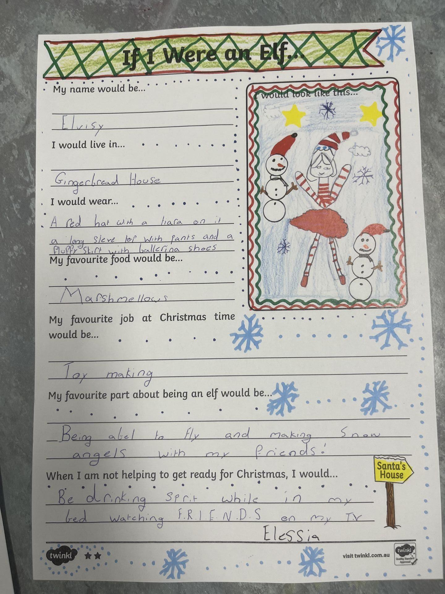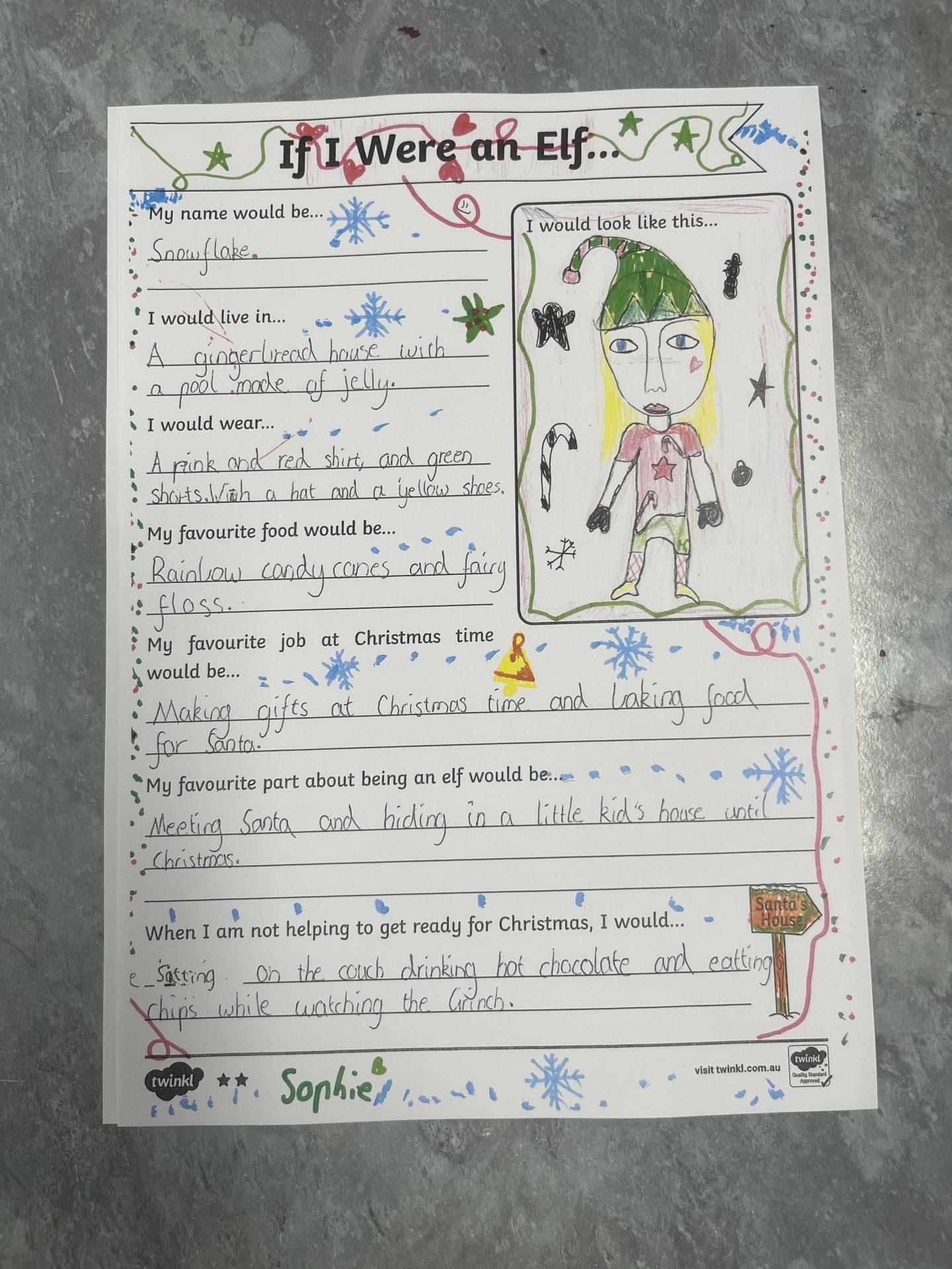 Grade 4LS created a Christmas writing piece, imagining what it would be like to be one of Santa’s elves, working hard at the North Pole to spread holiday cheer. They described a day in the life and responsibilities of an elf. To make this task even more creative and personal, students also created their own elf, giving it a name, special job, and unique personality to bring their writing to life. Thank you to the grade four class reps and families for your support all this year. We are looking forward to grade five in 2026!