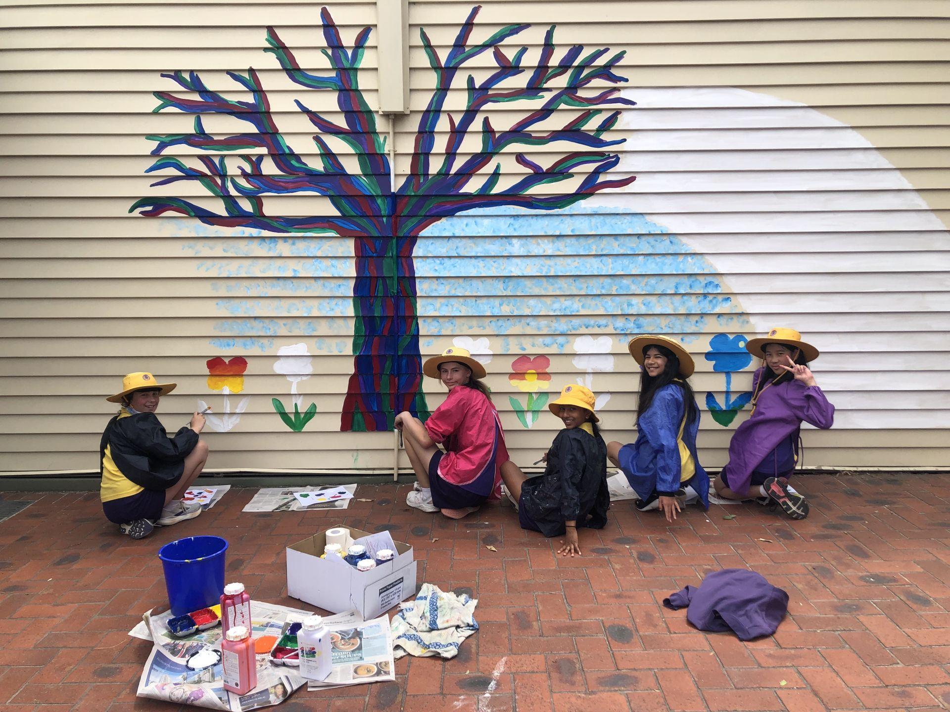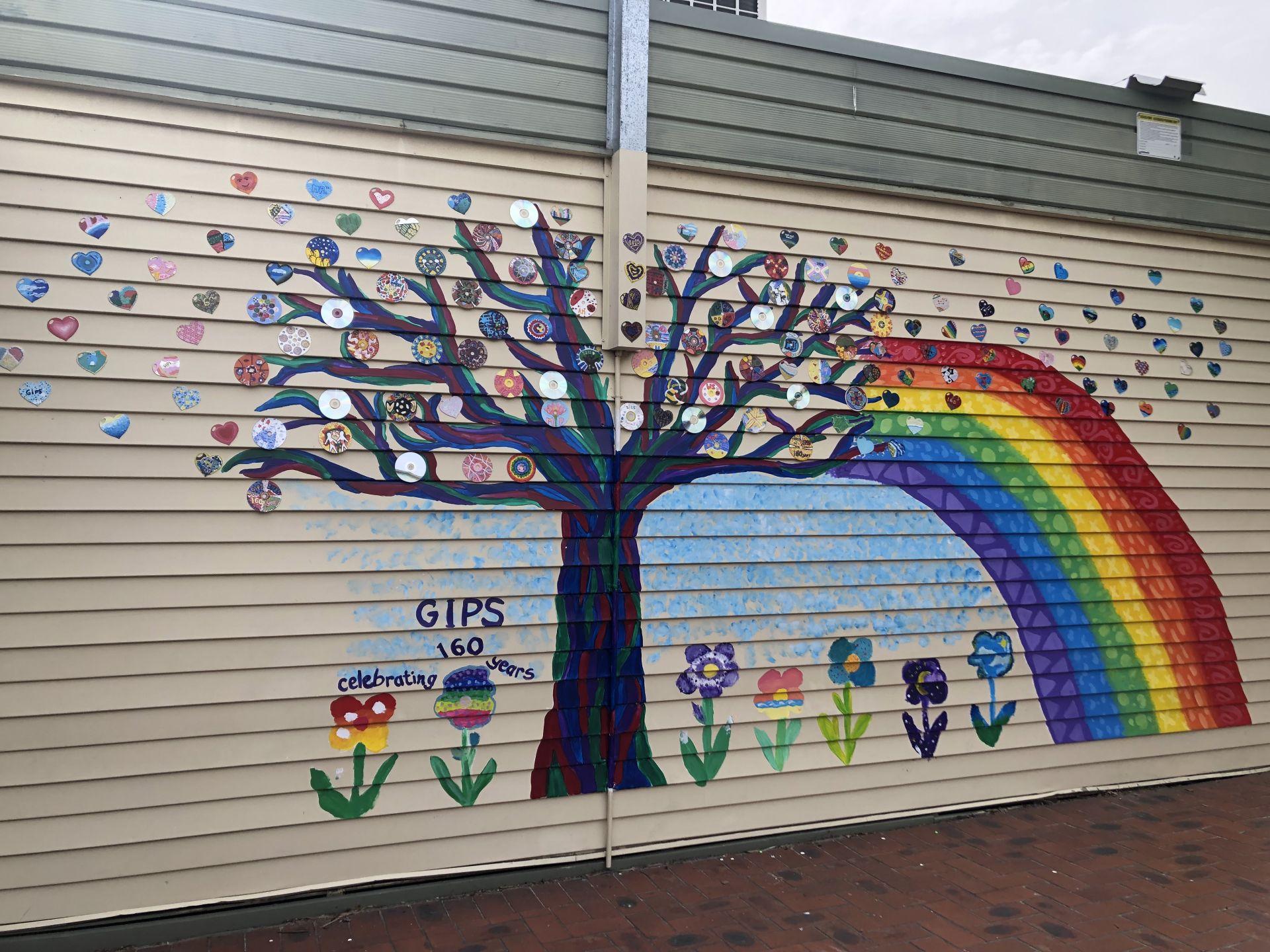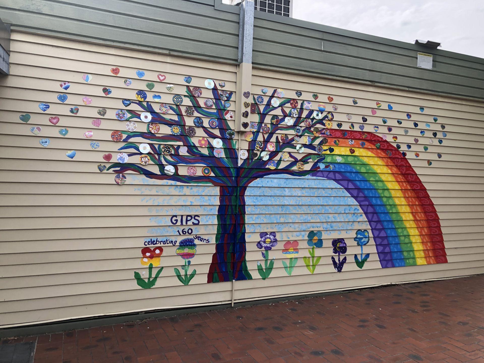 Over several days the mural gradually appeared on the portable wall. The tree symbolizes our school motto “Growth through belonging a community where every child thrives.” Year 6 visual art SALT team from this year and the year to come, had the opportunity to contribute. Many thanks to Ms Sjogren who helped paint as well. The mural will be complete on our last day with the chance for everyone in our incredible community to “Make their Mark at GIPS.” See you there!