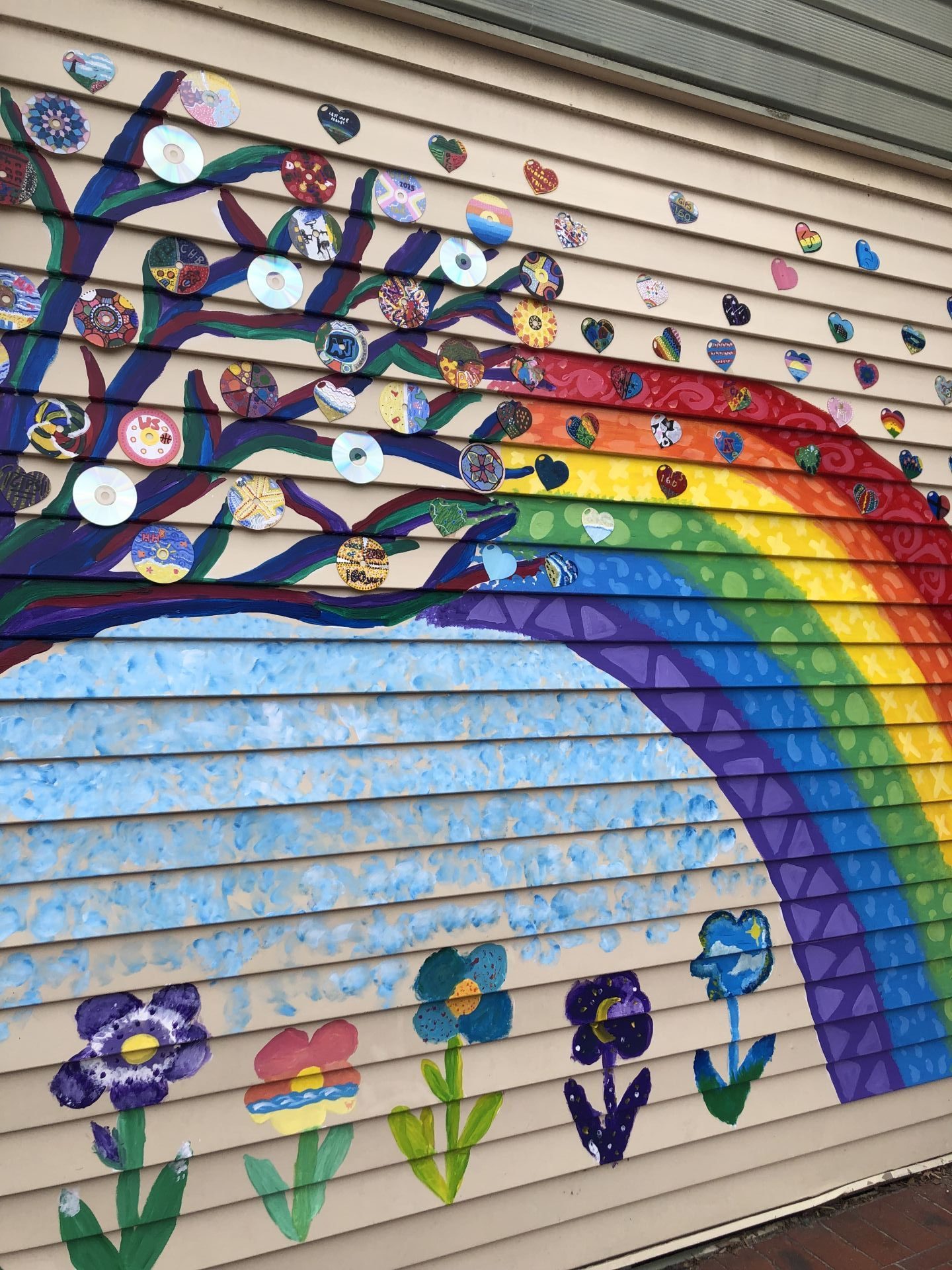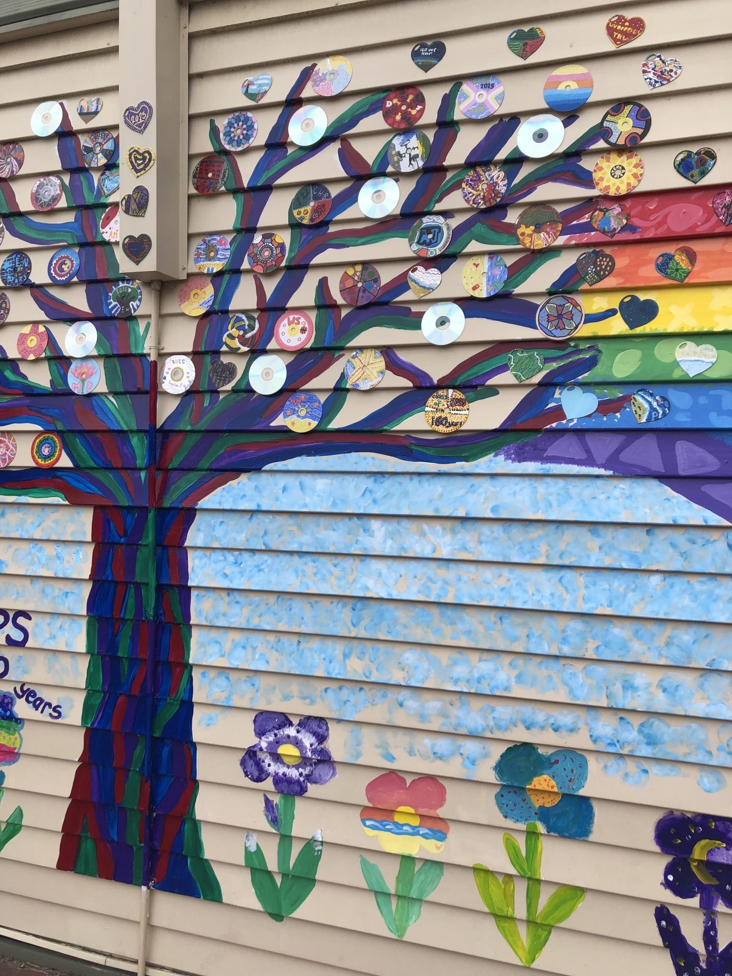This year’s legacy mural is a big one to celebrate the school’s 160th year! An amazing milestone to celebrate! Year 5/6 students spent this term looking at a range of circular artwork from a variety of cultures, like Australian Indigenous art, mandalas, middle eastern geometric designs and mathematical patterns as well. The Year 5 students worked on paper and the Year 6’s had the privilege of painting on old CD’s to create their artwork. Students also had the opportunity to paint a small heart to add to the mural as well.