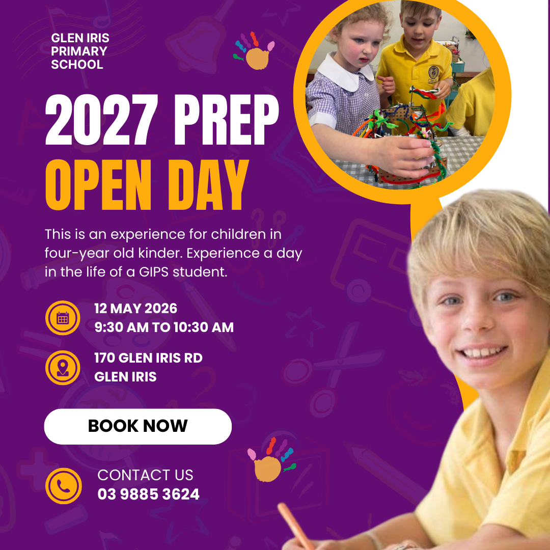 During Open House Day, GIPS students will take small groups of prospective students (with their parents) around to different activities aimed to capture "A Day in the Life at GIPS". Please only enrol if you are an interested 2027 Prep family. Future enrolments can attend a following year. To register your interest, please fill in the form below. Bookings are required. If you have any questions, contact our front office at (03) 9885 3624 or glen.iris.ps@education.vic.gov.au .