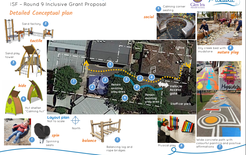 The current prep, grade one and two playground will be expanded to incorporate a range of playground sensory experiences from building proprioception to positive affirmations. These playgrounds aren't the only ones getting an upgrade. Off the oval, we are building more experiences to build proprioception including trampolines. We can't wait to show you how these playgrounds look soon.