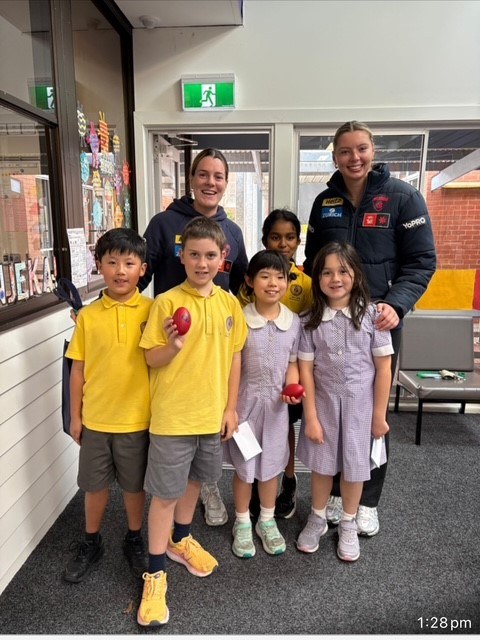 This week, Year Three students enjoyed a special visit from Melbourne Demons AFLW players Maeve Chaplin (Defender) and Georgia Gall (Key Forward). They discussed life as professional footballers, what motivates them, and shared statistics about their careers. Students were highly engaged, and a lucky few received souvenirs from the visit.
