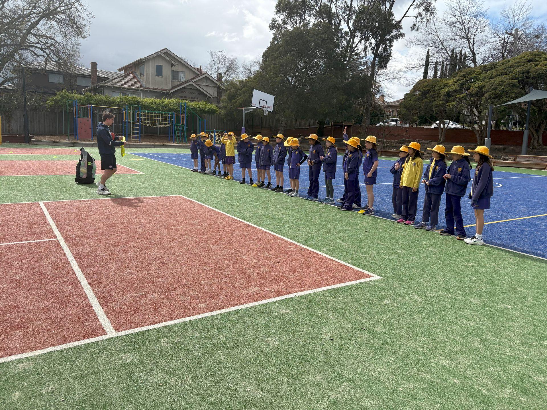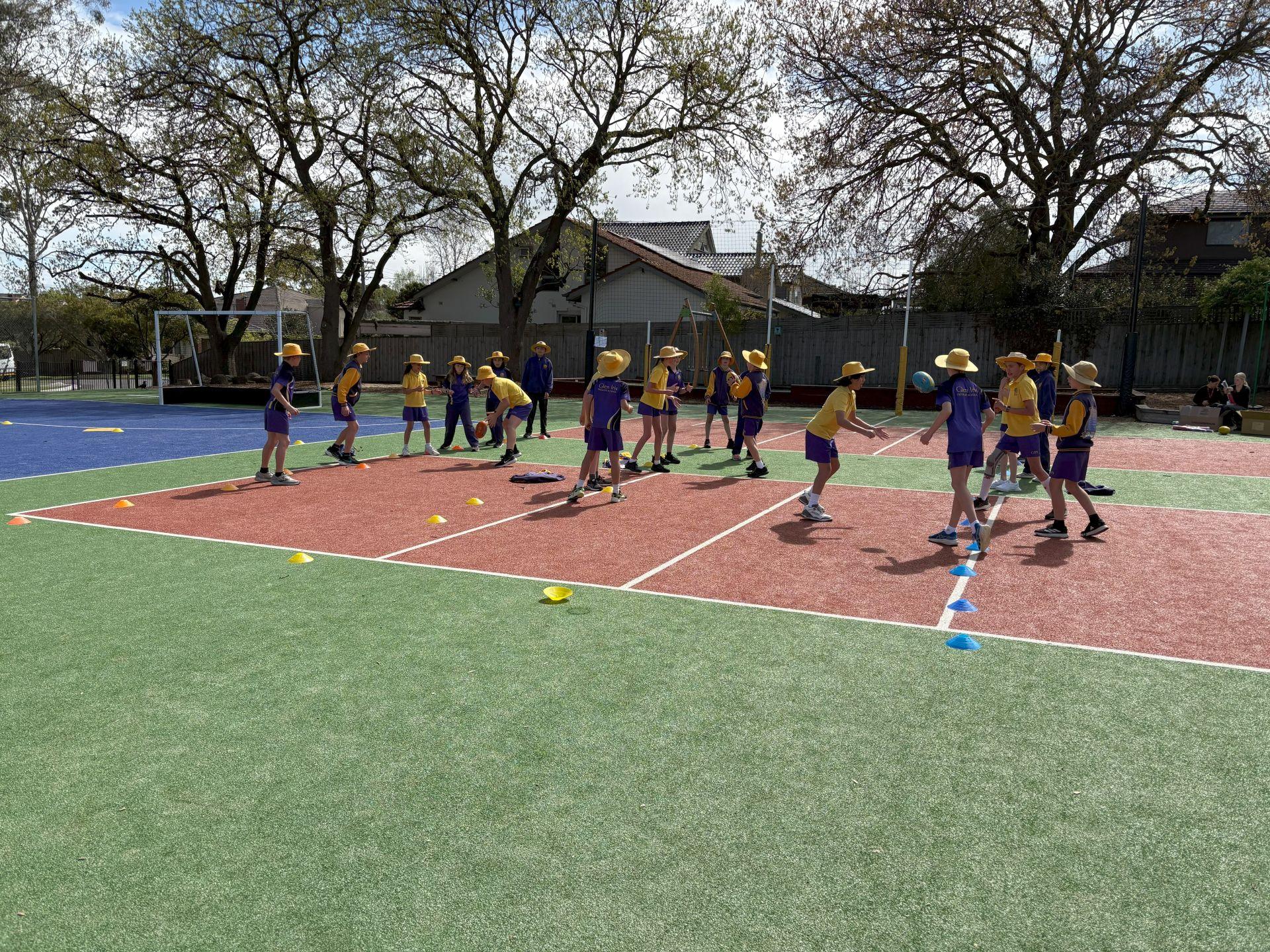 This term, our Grade 3–6 students have been lucky to take part in AFL sessions led by expert coaches from AFL Victoria thanks to funding we received through a Sporting Schools Grant.