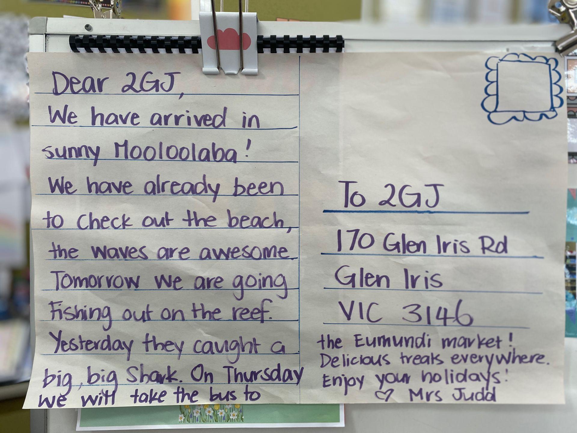 In writing, we have been learning all about the structure and purpose of friendly letters. The Grade Twos had a lot of fun writing a postcard to their classes from a special place they visited!